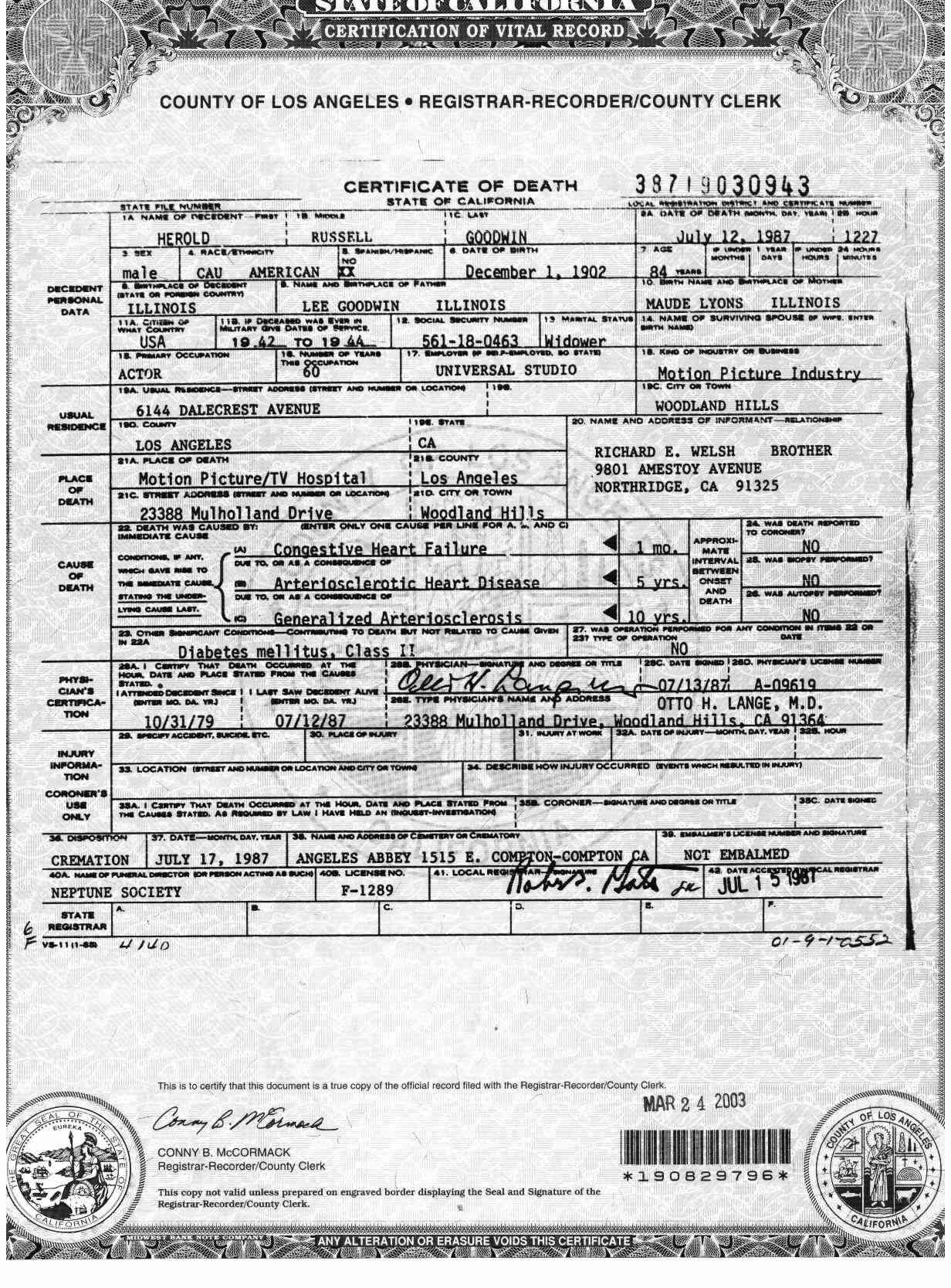 Death Certificate